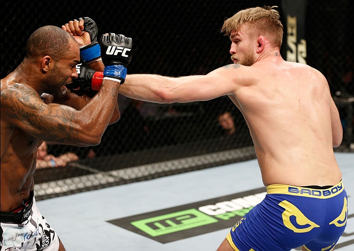 Полутяжелый вес: Александр Густафссон победил Джими Мануву техническим нокаутом (удар коленом и удары руками), 1:18, раунд 2.