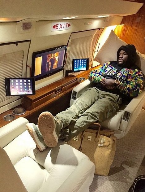 Конечно, такие большие деньжищи не могут не искушать владельца. Значительную их часть Флойд тратит на себя. Так Мэйвезер-младший является счастливым обладателем самолета и...