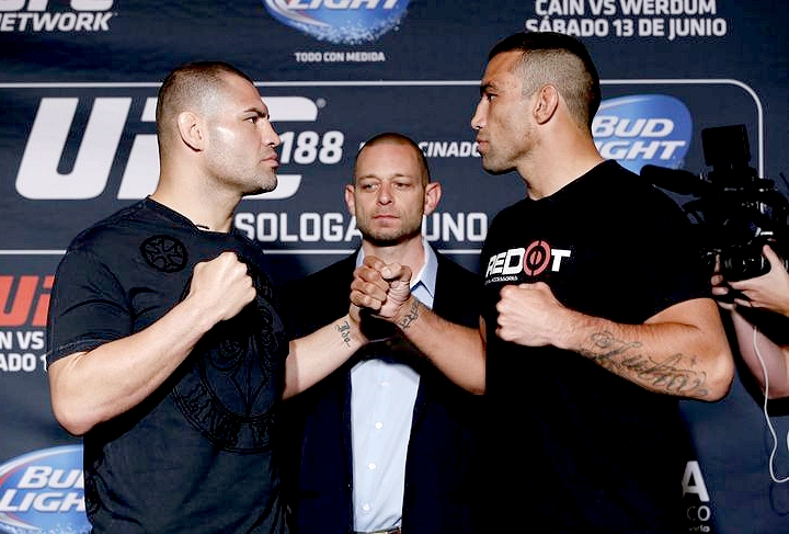Результаты и бонусы турнира UFC 188, который возглавил титульный поединок в тяжелом весе между чемпионом Кейном Веласкесом и временным чемпионом Фабрисио Вердумом.