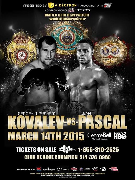 Российский чемпион мира по версиям WBA Super/IBF/WBO в полутяжёлом весе Сергей Ковалёв (27-0-1, 24 КО) успешно сохранил доминирующие позиции в дивизионе, одержав победу над экс-чемпионом из Канады Жаном Паскалем (29-3-1, 17 КО).