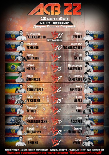 12 сентября в Санкт-Петербурге прошёл турнир ACB 22.