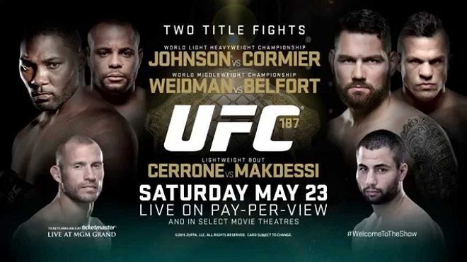 Несомненно, один из двух — UFC 187. Турнир был одним из самых ярких в 2015 году и дал много пищи для размышления и обсуждения, как фанатам смешанных боевых искусств, так и журналистам. Тот факт, что Джон Джонс был вынужден сняться с боя против Энтони Джонсона, вызвало яростные обсуждения между поклонниками и в СМИ, так еще и прелимы были одни из самых мощных по составу за нынешний год. Ивент был настолько зрелищным, что после главного события уже мало кто упоминал Джона Джонса, все обсуждали прошедший турнир.