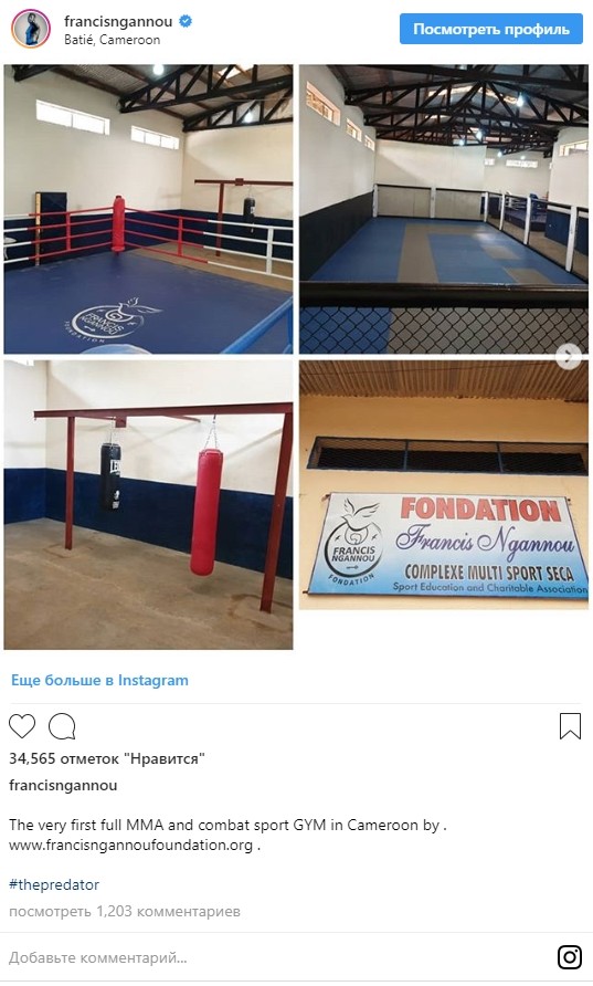 Бывший претендент на чемпионский титул UFC в тяжелом весе Фрэнсис Нганну исполнил свою мечту и открыл специализированный спортзал для единоборств в родном Камеруне.