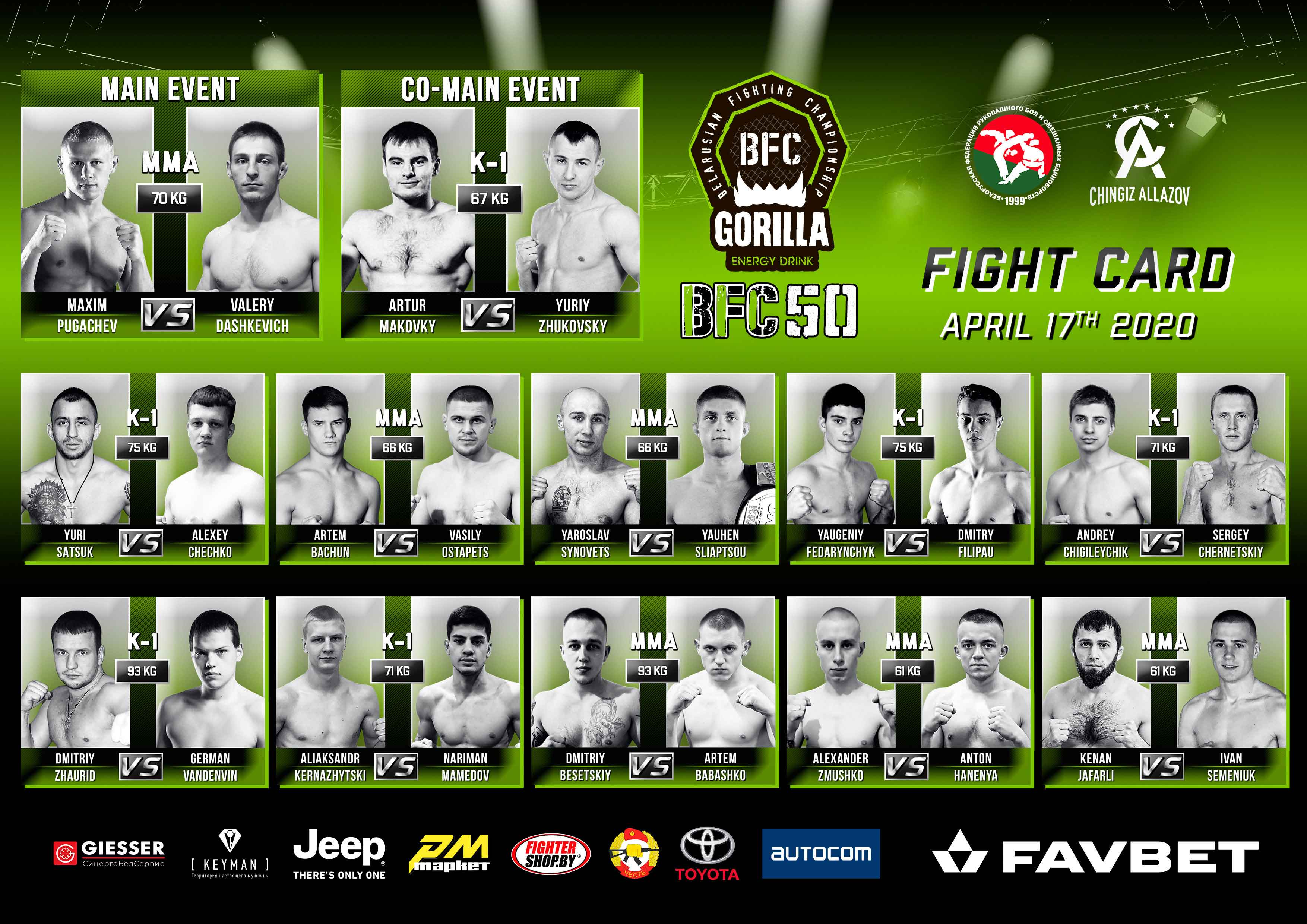 Поэтому с 19.00 включаем прямую трансляцию на MixFight.by и смотрим потрясающий вечер боёв на турнире - BFC 50!