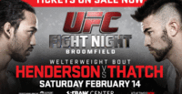 Новости First«12»Last Бенсон Хендерсон намерен драться с победителем титульной схватки В столице Ирландии прошел турнир Bellator 285. Экс-чемпион UFC избавляется от вредной привычки В прежние годы Бенсон Хендерсон дрался в клетке и проводил тренировки, не вынимая зубочистки изо рта. Хендерсон намерен бороться за пояс Bellator Экс-чемпион UFC в легкой весовой категории заключил новое соглашение с известным промоушеном. Что будет дальше, Бенсон Хендерсон не знает Известный американский боец недавно провел свой последний бой по действующему контракту с Bellator. Бенсон Хендерсон возвращается в Bellator в конце лета В данный момент Бенсон завершает лечение травмы колена. Скотт Кокер: «Если Бен Хендерсон захочет драться за титул - я организую ему бой с Андреем Корешковым» Глава Bellator Скотт Кокер прокомментировал подписание Бенcона Хендерсона. Бен Аскрен задумал избить Бена Хендерсона Экс-чемпион UFC в легком весе Бенсон Хендерсон, с недавнего времени, получил статус "свободный агент" и пока находится в раздумии, в какой именно организации, продолжить свою бойцовскую карьеру. UFC Fight Night: Бенсон Хендерсон - Брендон Тетч. Результаты Результаты турнира UFC Fight Night: Бенсон Хендерсон - Брендон Тетч. Рафаэль дос Аньос: «Я только что побил претендента №1» Автор сенсационного апсета рассказал о победе над Бенсоном Хендерсоном, работе Джона МакКарти и своем будущем. Видео боя Бен Хендерсон – Рустам Хабилов Видеозапись поединка, прошедшнего в рамках турнира UFC Fight Night: Henderson vs. Khabilov по правилам ММА. First«12»Last