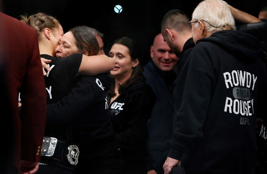 В первом раунде на 1:06 минуте Ронда Раузи победила Сару Макманн техническим нокаутом (а именно - ударом коленом в корпус).