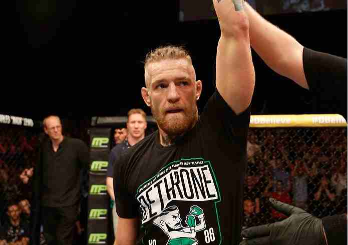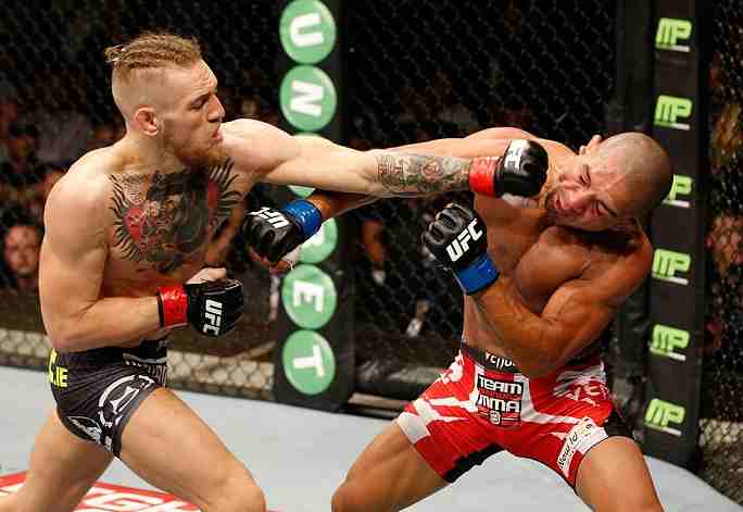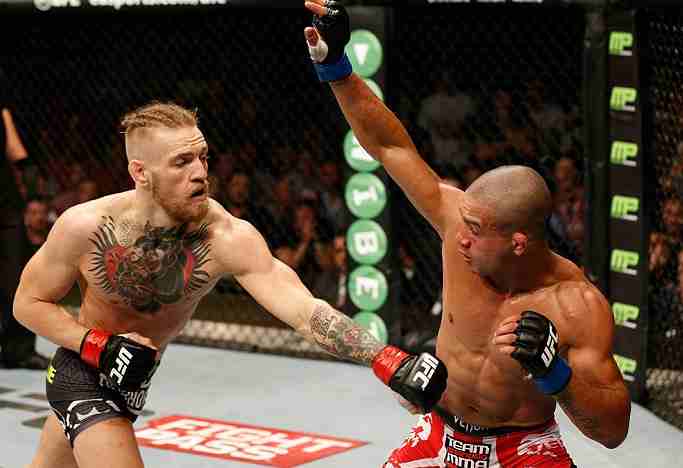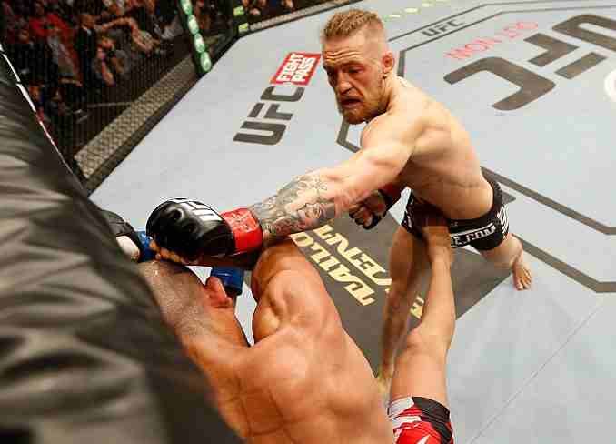 Полулегкий вес: Конор Макгрегор победил Диего Брандао техническим нокаутом (удары руками), 4:05, раунд 1.