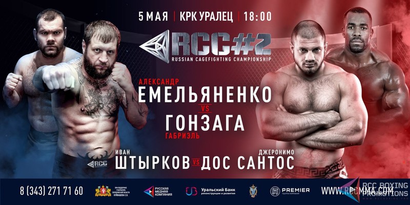 Турнир по смешанным единоборствам Russian Cagefighting Championship 2, организованный промоутерской компанией RCC Boxing Promotions, состоится в Екатеринбурге 5 мая и пройдет в КРК «Уралец» (начало шоу в 18-00 по местному времени). Стал известен полный и окончательный файткард вечера, сформированный после ряда изменений.