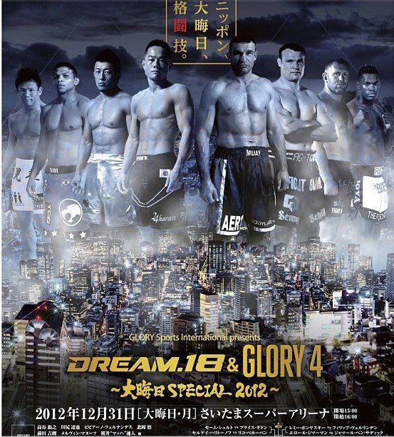 Предлагаем вашему вниманию постер совместного турнира DREAM18&GLORY4, который состоится в Японии традиционно в канун Нового года.