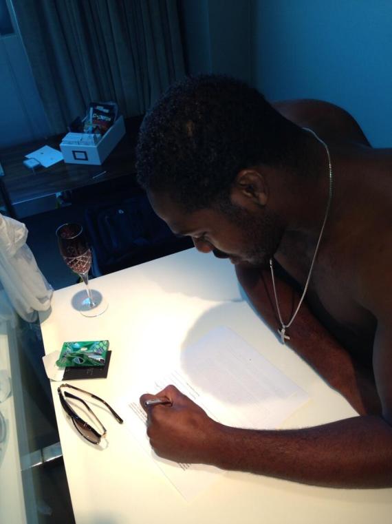 Джон Джонс выложил в Твиттер фотографию, на которой подписывает официальное соглашение на бой