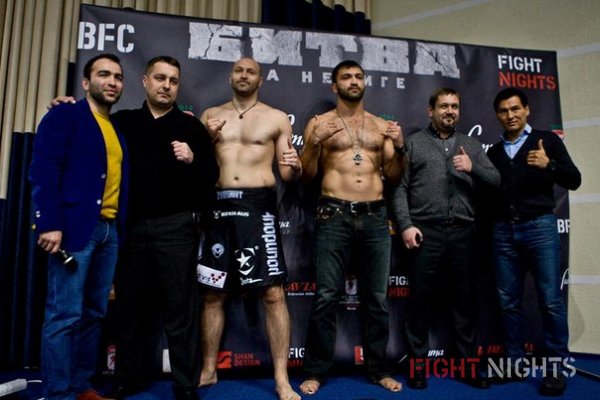 В Минске участники турнира FIGHT NIGHTS & BFC «Битва на Немиге» прошли процедуру взвешивания. Белорус Андрей Орловский показал вес 113,2 кг, его соперник немец Андреас Краниотакес потянул на 106,7 кг. Напомним, «Битва на Немиге» состоится в пятницу на Минск-Арене.