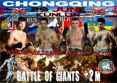 29 июня в Китае (Chongking) состоялся профессиональный турнир-четверка за титул чемпион мира среди профессионалов по правилам К-1 среди супертяжеловесов под названием “Турнир ГИГАНТОВ выше двух метров”.