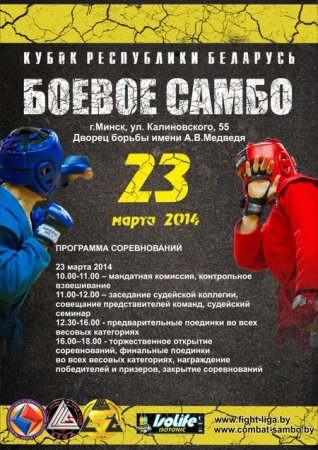 Кубок Республики Беларусь по боевому самбо будет проходить 23 марта 2014 года по адресу: Минск, ул. Калиновского, 55 (Дворец борьбы имени А. В. Медведя).