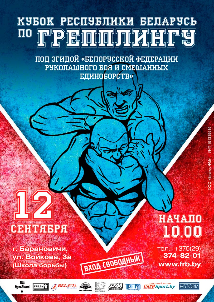 Чемпионат Республики Беларусь по грепплингу (вид рукопашного боя) состоится в городе Барановичи 12 сентября по ул Войкова 3 а (школа борьбы). Начало в 10.00, вход свободный!