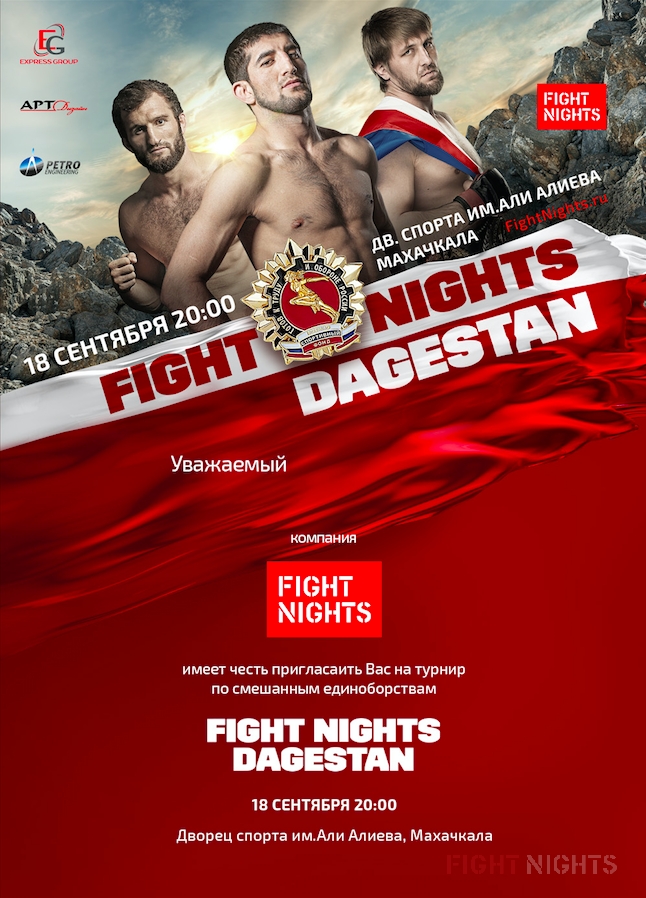 Дагестан по праву является одним из центров единоборств в России. Бойцы из Дагестана гордо несут знамя Российской Федерации далеко за пределами страны, радуя болельщиков своими яркими победами. Большой праздник смешанных единоборств приходит в дагестанскую столицу вместе с FIGHT NIGHTS 18 сентября 2015 года.