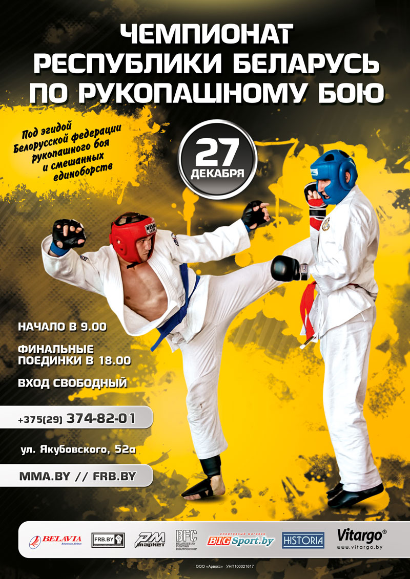 Чемпионат Республики Беларусь по рукопашному бою пройдет 26-27 декабря 2015 года в Минске.