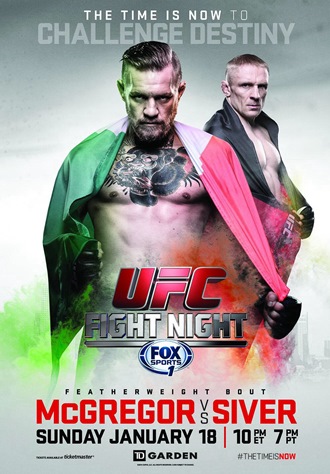 Полулегкий вес: Конор Макгрегор победил Денниса Сивера техническим нокаутом (удары локтями), 1:54, раунд 2.