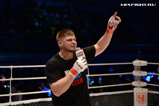 Ну, Рашид ушел в UFC, и Яковлев тоже, успешно там выступают, молодцы, потому пришлось найти достойных оппонентов на титул из тех, кто есть. Мурада бои я видел и раньше, мне очень понравился его бой с Яковлевым. Только я не узнал его в этом бою. Тогда я видел хорошего борца, в этот раз было не так интересно. Что за боец из Бразилии, я так и не понял, особых проблем Мураду он не доставил. В общем, бой неплохой, но и не самый зрелищный на турнире.