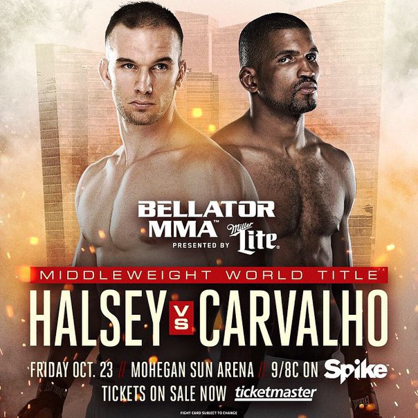 Непобежденный экс-чемпион BELLATOR в среднем весе Брендон Хэлси (9-0) был лишен своего титула три месяца назад из-за того, что не смог сделать вес перед поединком с Кендаллом Грувом, в котором он впервые должен был защищать звание чемпиона, завоеванное им в бою против российского бойца Александра Шлеменко. В конечном итоге Хэлси досрочно финишировал Грува, закончив поединок техническим нокаутом в четвертом раунде.