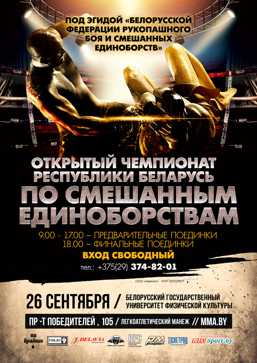 27 сентября в 20:00 Беларусь 5 покажет открытый чемпионат Республики Беларусь по смешанным единоборствам.