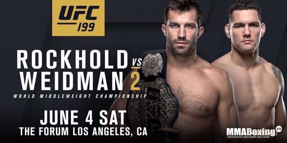 Новоиспеченный чемпион UFC среднем весе Люк Рокхолд (15-2 MMA, 5-1 UFC) узнал точную дату своего реванша с бывшим чемпионом Крисом Вайдманом (12-1 MMA, 9-1 UFC) – бойцы возглавят турнир UFC 199, запланированный на 4 июня. Что любопытно, Люк Рокхолд недавно заявлял, что категорически отказывается драться именно на UFC 199, но, похоже, судьба распорядилась иначе.