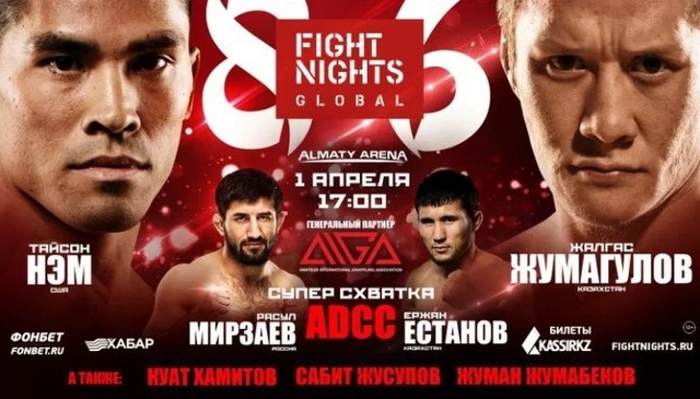 Итоги турнира FIGHT NIGHTS GLOBAL 86, который состоялся 1 апреля 2018 года на «Алматы-Арена» в городе Алмата (Казахстан).