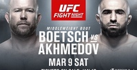 Новости Омари Ахмедов - Тим Боетч на UFC on ESPN+ 4 в марте Спустя год и три месяца российский боец Омари Ахмедов вернется в октагон, чтобы подраться со старожилом дивизиона Тимом Боетчем. Зарплаты участников UFC 182: Jones vs. Cormier Предлагаем вашему вниманию гонорары бойцов турнира UFC 182, который возглавил титульный поединок в полутяжелом весе между Джоном Джонсом и Дэниэлом Кормье. Результаты и бонусы UFC 182: Jones vs. Cormier Предлагаем вашему вниманию результаты и бонусы турнира UFC 182. UFC Fight Night 37: Гуннар Нельсон против Омари Ахмедова UFC обнародовал полный список боев во время UFC Fight Night 37 в марте. Омари Ахмедов (12-1 MMA, 1-0 UFC) проведет поединок против Гуннара Нельсона (11-0-1 MMA, 2-0 UFC). Омари Ахмедов меняет весовую категорию Российский средневес UFC, в минувшие выходные успешно дебютировавший в октагоне поединком против Тиаго Перпетуо, свой следующий бой проведет в рамках полусреднего веса.
