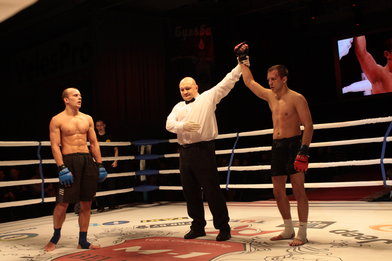 - Финальный поединок «М-1 Беларусь-2010», прекрасно организованный федерацией рукопашного боя и смешанных единоборств. Он состоялся в декабре в минском Дворце спорта, а соперником был Сергей Синкевича. Это была вторая наша встреча на ринге и я снова победил по очкам. Сергей очень серьезный соперник, побольше бы таких боев. Они помогают стать сильнее, накопить опыт.