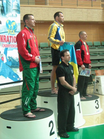 На Украине наша команда выступала под управлением главного тренера клуба «Керберус» Олега Петровича. Помогал ему Алексей Анцыпович, который к тому же на чемпионате выступил еще и судьей. В составе нашей сборной страну представляли трое бойцов: Денис Тимошевич (до 80 кг), Евгений Оленцевич (до 90) и Сергей Радько (до 110). Все они победители прошедшего недавно чемпионата Беларуси по грепплингу в своих весовых категориях.