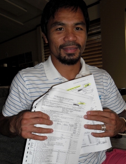 Звезда мирового бокса филиппинец Мэнни Пакьяо продемонстрировал налоговые декларации, поданные им в налоговые органы США в 2008 и 2009 годах.