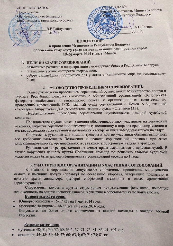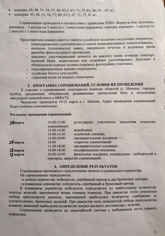 Отборочный Чемпионат и первенство по таиландскому боксу к чемпионату мира пройдет с 19 по 23 марта в Минске по адресу: ул. Натуралистов, 10. Для спортивных команд публикуется ПОЛОЖЕНИЕ соревнований.