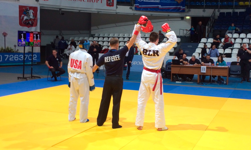 Белорусы на третий чемпионат мира по рукопашному бою, который, к слову, проходил в «белокаменной», в силу определенных причин отправились усеченным составом. У мужчин не было наших представителей в супертяжелом весе, у женщин «честь флага» отстаивали только две спортсменки. Между тем белорусская команда по праву входила в группу фаворитов.