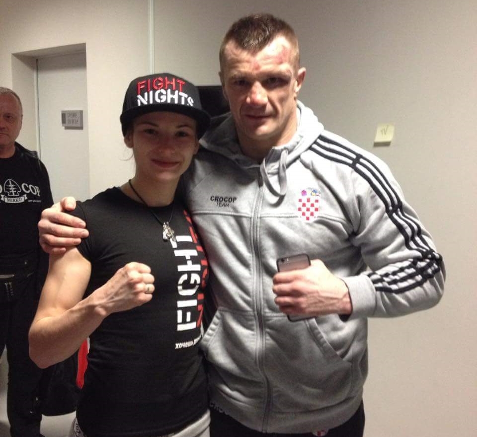 - Первым поздравил Камил Гаджиев. Он позвонил и от команды FIGHT NIGHTS поздравил меня с победой. Еще Мирко Кро Коп и вся его команда поздравили меня с победой им очень понравился мой бой! Потом еще на память сделали фото с Мирко, это было после его боя.