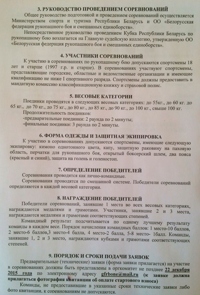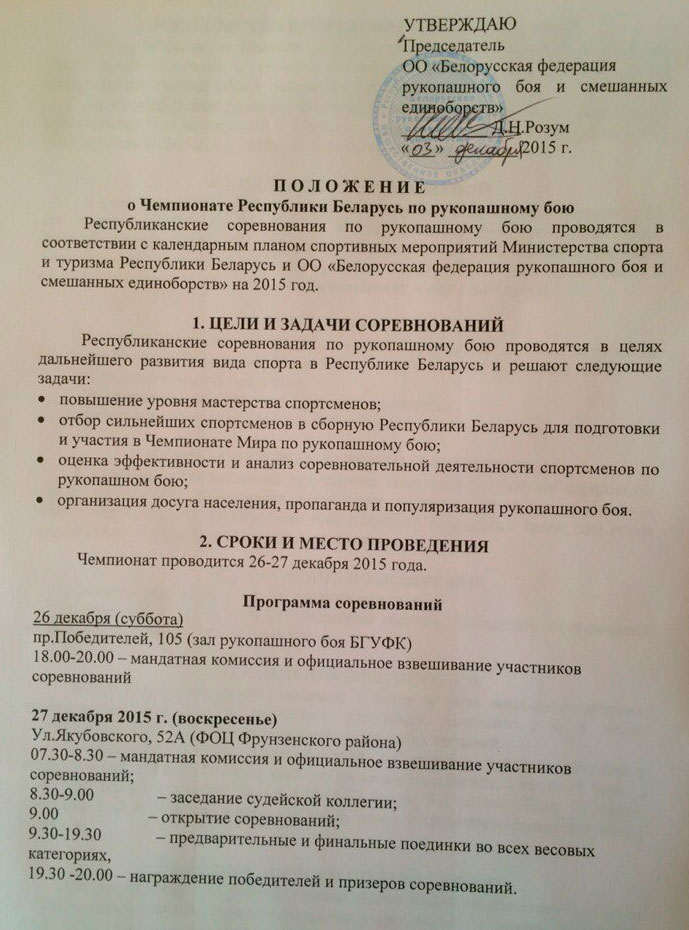 Предлагаем вашему вниманию положение об Открытом Первенстве Республики Беларусь по рукопашному бою.