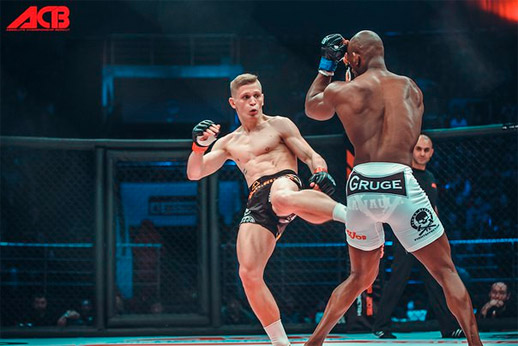 5. Амирхан «Хищник» Адаев побеждает Джонаса «Бонуса» Боено техническим нокаутом. 1 раунд. 3:28.