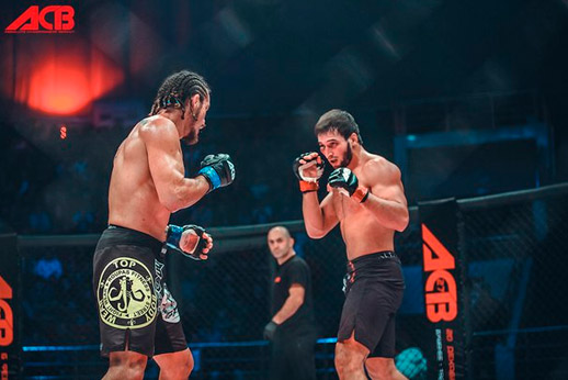Велимурад Алхасов побеждает Руслана «Хищника» Абильтарова техническим нокаутом и становится чемпионом лиги АСВ в наилегчайшем весе. 2 раунд. 1:55.