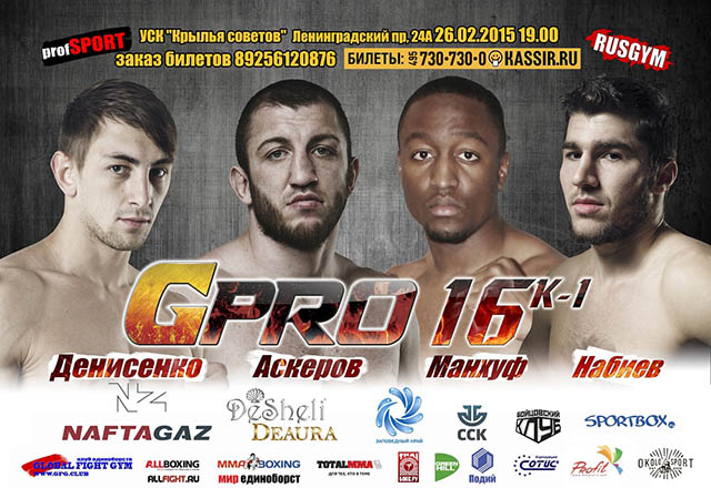 26 февраля в московском УСК "Крылья Советов" на Ленинградском шоссе состоится турнир по К-1 GPRO 16, главным боем которого станет матч-реванш россиянина Джабара Аскерова и тайца Нонсаи. Предлагаем вашему вниманию полный файт-кард турнира: