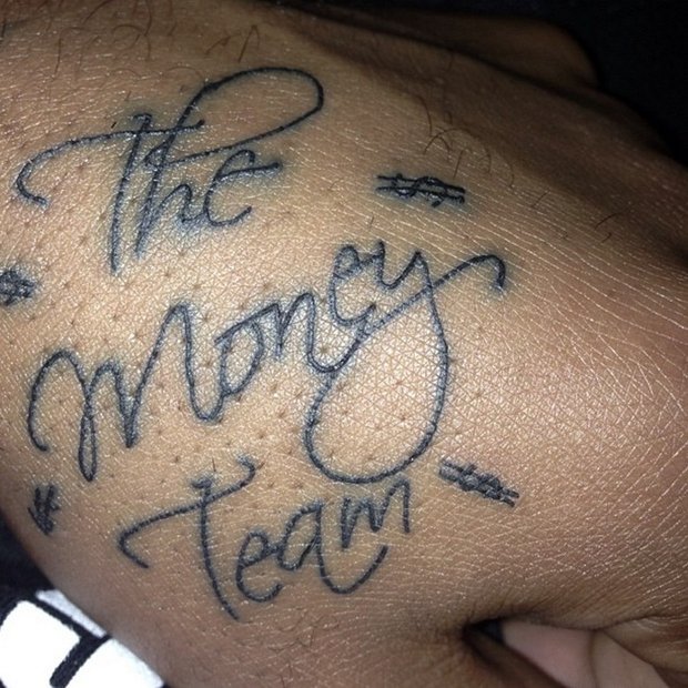 Спарринг-партнер Мэйвезера Лэннел Билоус в знак уважения заслуг Флойда набил наколку "The Money Team" на левой кисти.