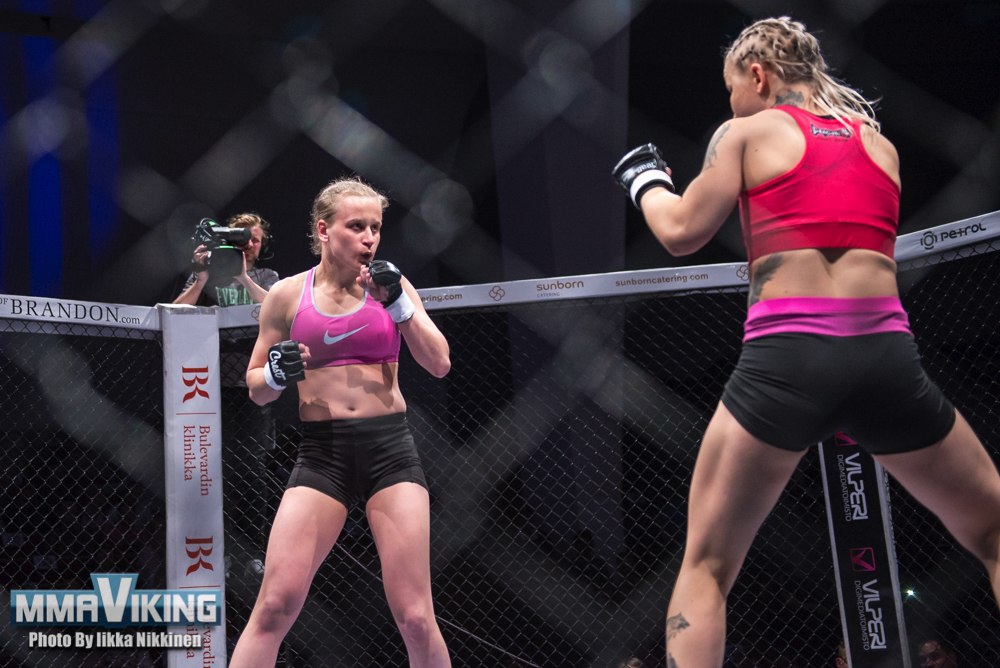Бой не зашел дальше первого раунда, после небольшого размена в стойке финка была вынуждена войти в клинч с Лилией, после недолгой работы в клинче, бой перешел в партер, где Лилия великолепно выполнила рычаг локтя из позиции защиты. Очередная победа нашей соотечественицы и первое поражение для финки!