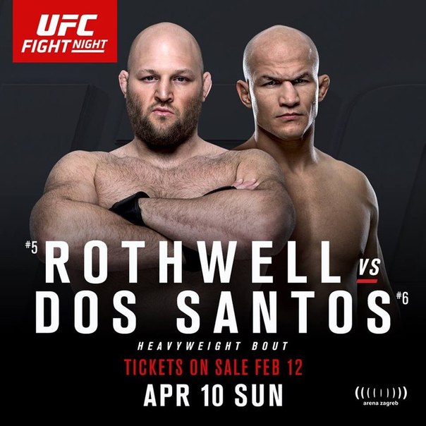 Экс-чемпион UFC в тяжелом весе Джуниор дос Сантос (17-4) в свое следующем бою, встретится в октагоне с Беном Ротвеллом (36-9) в главном событии турнира UFC Fight Night 86.