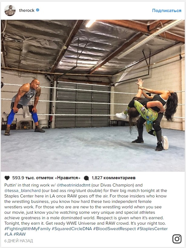 Дуэйн Джонсон вернулся на ринг, приступив к съемкам в «Драке с семьей»