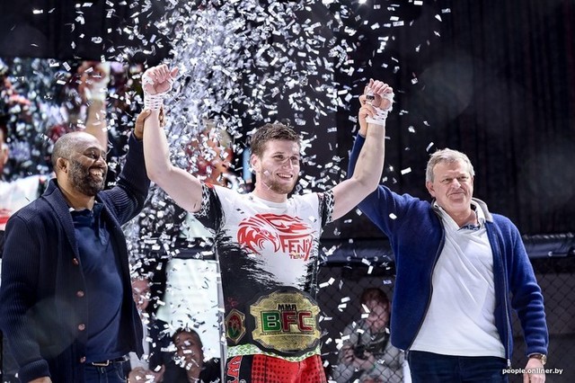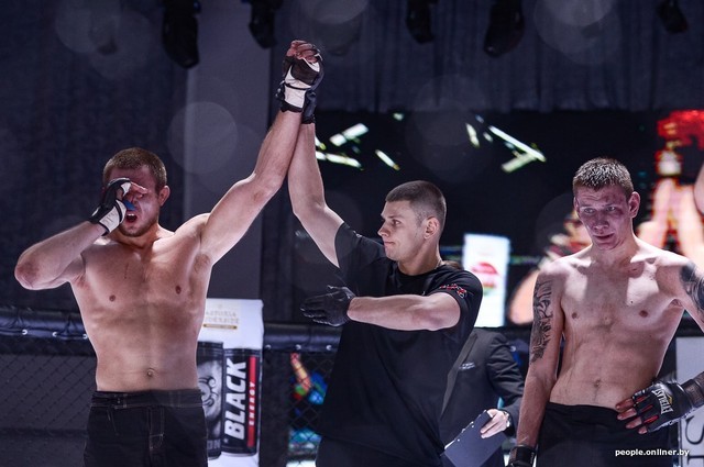 В главном бою за чемпионский пояс встретились Денис Магер и Александр Данильченко. Денис победил техническим нокаутом в первом раунде. На это ему понадобилось меньше 2 минут 40 секунд.