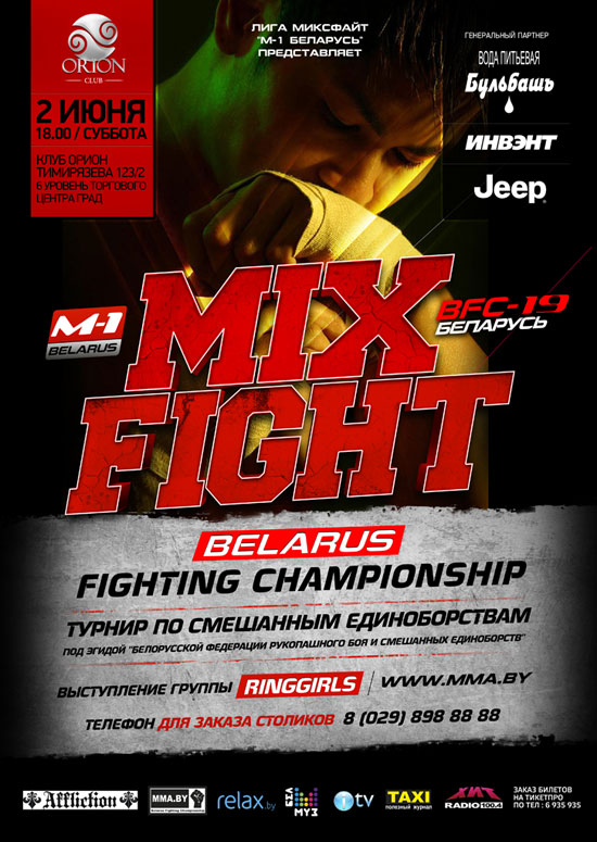 Предлагаю Вашему вниманию промо-ролик и афишу турнира "Belarus Fighting Championship - 19", который пройдет 2 июня в клубе "Орион" г. Минск