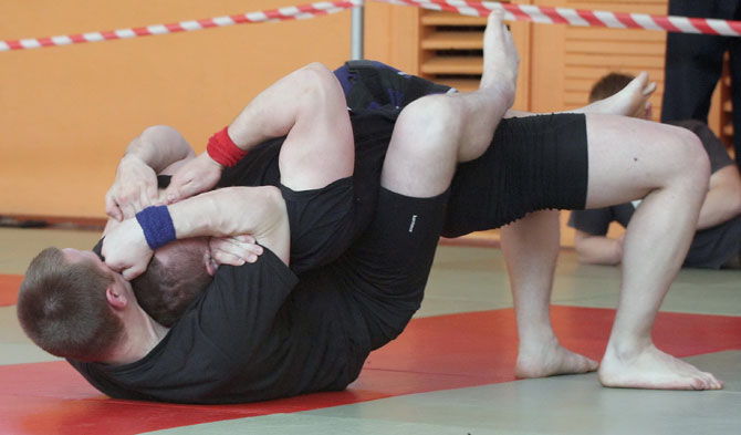 На Украине наша команда выступит под управлением главного тренера клуба «Керберус» Олега Петровича. Помогать ему будет Алексей Анцыпович, который к тому же на чемпионате выступит еще и судьей. В составе сборной – трое бойцов: Денис Тимошевич (до 80 кг), Евгений Оленцевич (до 90) и Сергей Радько (до 110). Все они победители прошедшего недавно чемпионата Беларуси по грепплингу в своих весовых категориях.